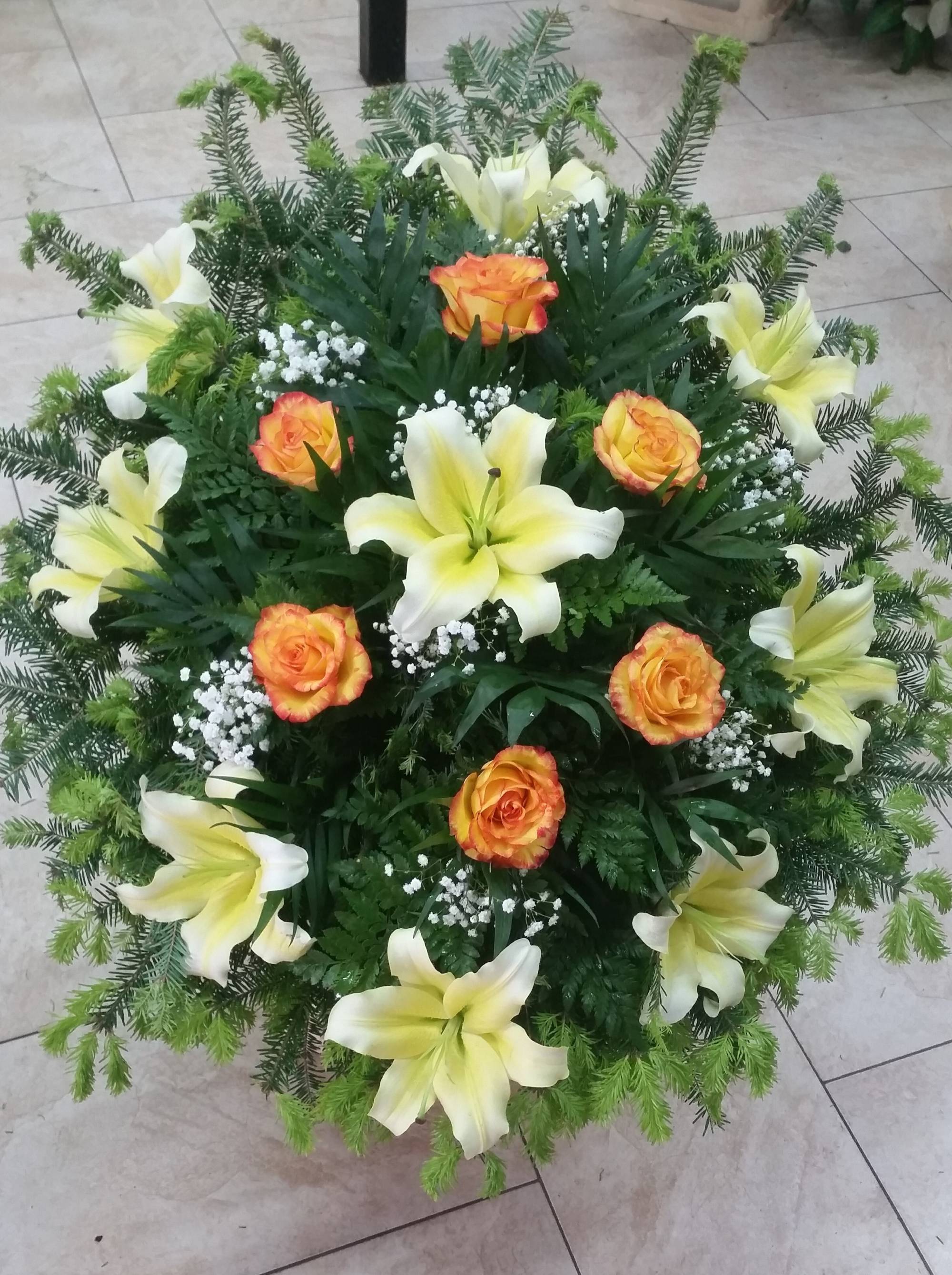 Współpracujemy z doświadczonymi florystami, którzy tworzą wieńce i wiązanki a także stroiki i dekoracje trumny i urny dostosowane do przebiegu uroczystości oraz życzeń rodziny. Oferujemy klasyczne formy, jak i nietypowe aranżacje – wieńce rzymskie, w kształcie serca, krzyża, skrzydeł anioła, misia czy motywów nawiązujących do pasji lub zawodu Zmarłego. Szczególną formą pożegnania mogą być pojedyncze kwiaty (najczęściej róże) wrzucane przez rodzinę i żałobników do grobu po złożeniu trumny bądź urny.